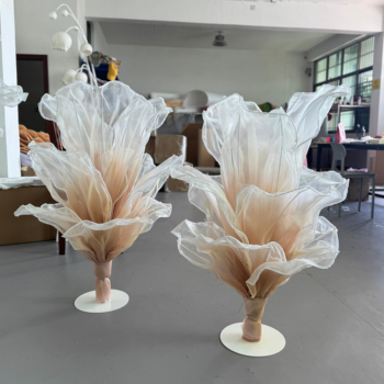 Installation d'art en soie géante faite à la main de luxe haut de gamme pour la décoration de scène de mariage vitrine fleur géante