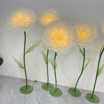 Kunstmatige Gigantische Bloemen Met Verlichting Organza Pioen Handgemaakte Bloemen Voor Bruiloft Raamfeest Decoratie