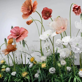 ชุดดอกโบตั๋นกระดาษผ้าโปร่งบางเทียมลายดอกป๊อปปี้ดอกไม้งานแต่งงานสุดหรูตกแต่งงานจัดแสดงดอกไม้