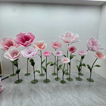 ดอกไม้ยักษ์ที่กำหนดเองยืนฟรีซัพพลายแต่งงานตกแต่งบ้านเทศกาลตกแต่งผ้าไหม Organza กระดาษวัสดุ Eva