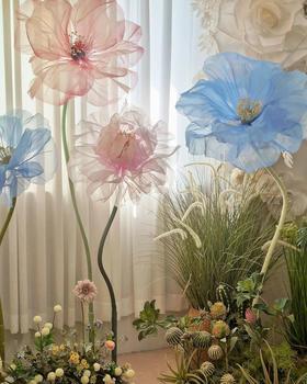 Özel dev çiçek serbest duran seti düğün kaynağı ev dekorasyon festivali dekor ipek organze kağıt eva malzeme